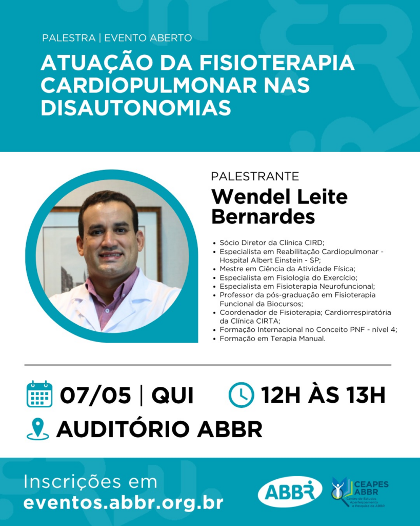 Dia 07 de Maio de 2026, 12h às 13h, no Auditório ABBR